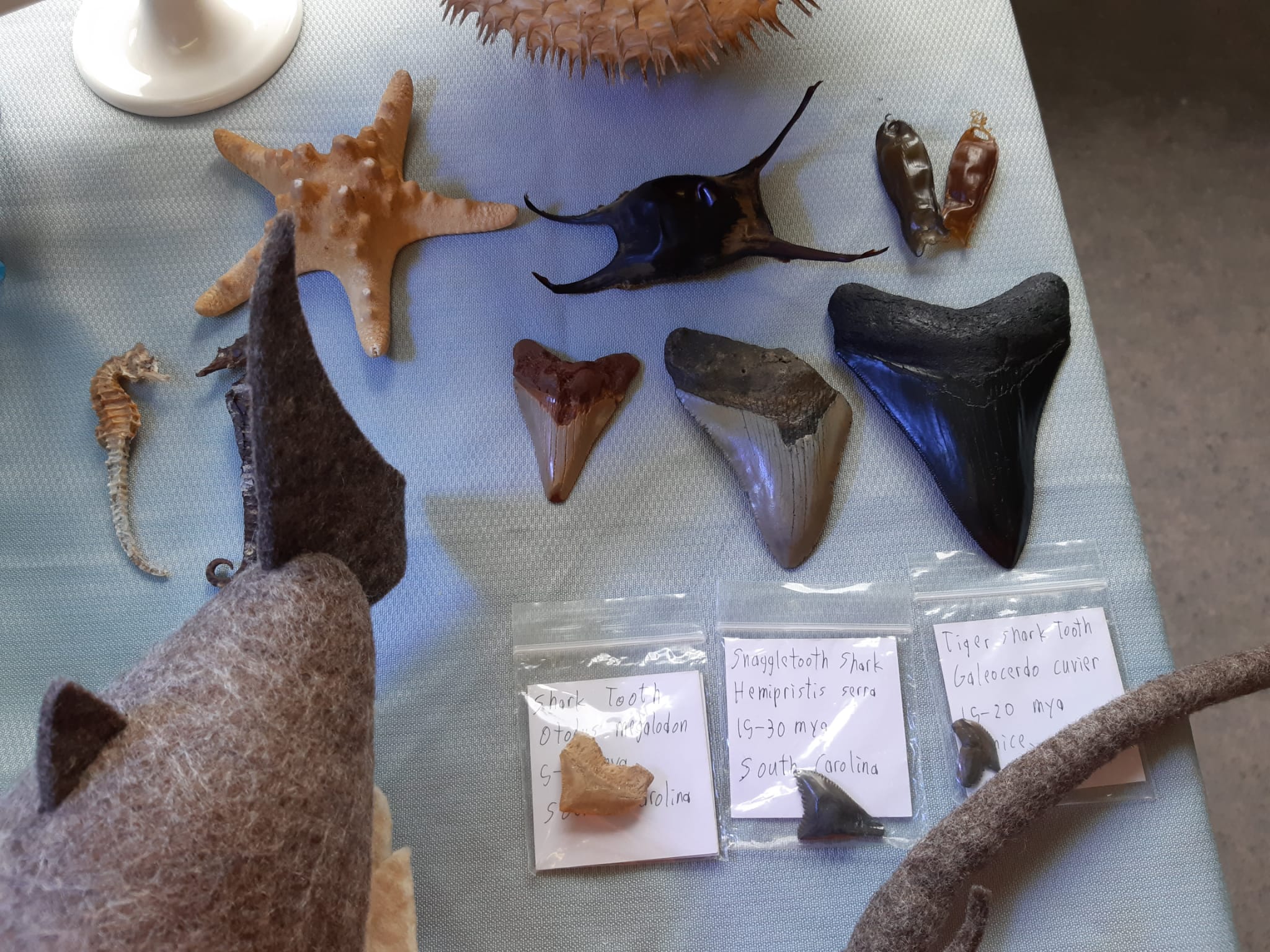 More cost-effective than the touchpool. A marine workshop including a table covered with facinating marine artefacts for people to view and hold. Everything from prehistoric megalodon teeth, whale bones, fossilised seahorses, and much more!