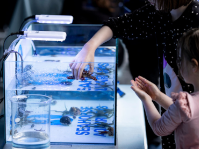 The most popular option! A workshop accompanied by hardy rock-shore species on display to view and hold. Get up close with sea stars, crabs, sea cucumbers, and much more! Includes marine conversations/facts with the audience and marine artefacts will also be on display.